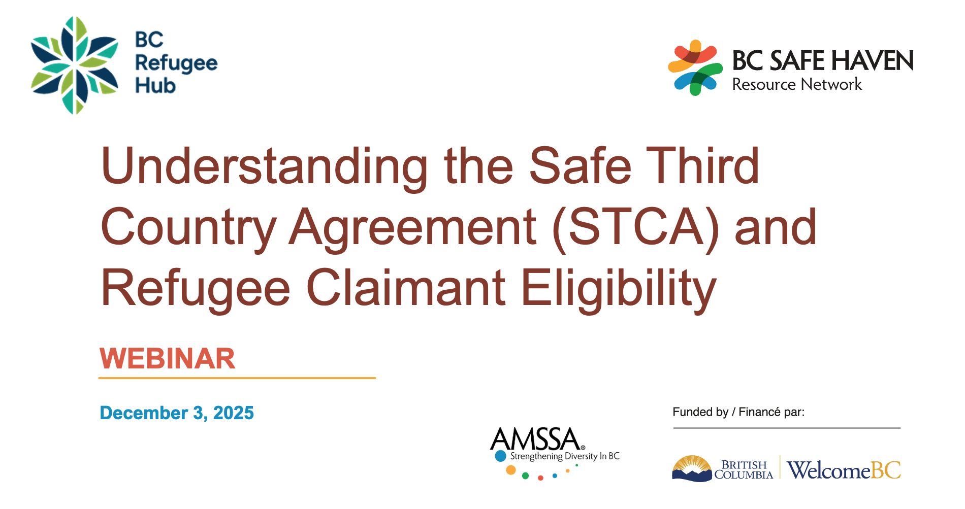 This webinar took place on December 3, 2025. In this recorded session, we examine refugee claimant eligibility and ineligibility decisions, including how policies such as the Safe Third Country Agreement (STCA) affect asylum seekers and refugee claimants, and what this means for frontline support.